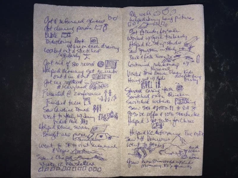 Rebecca’s Year in Review on a Napkin